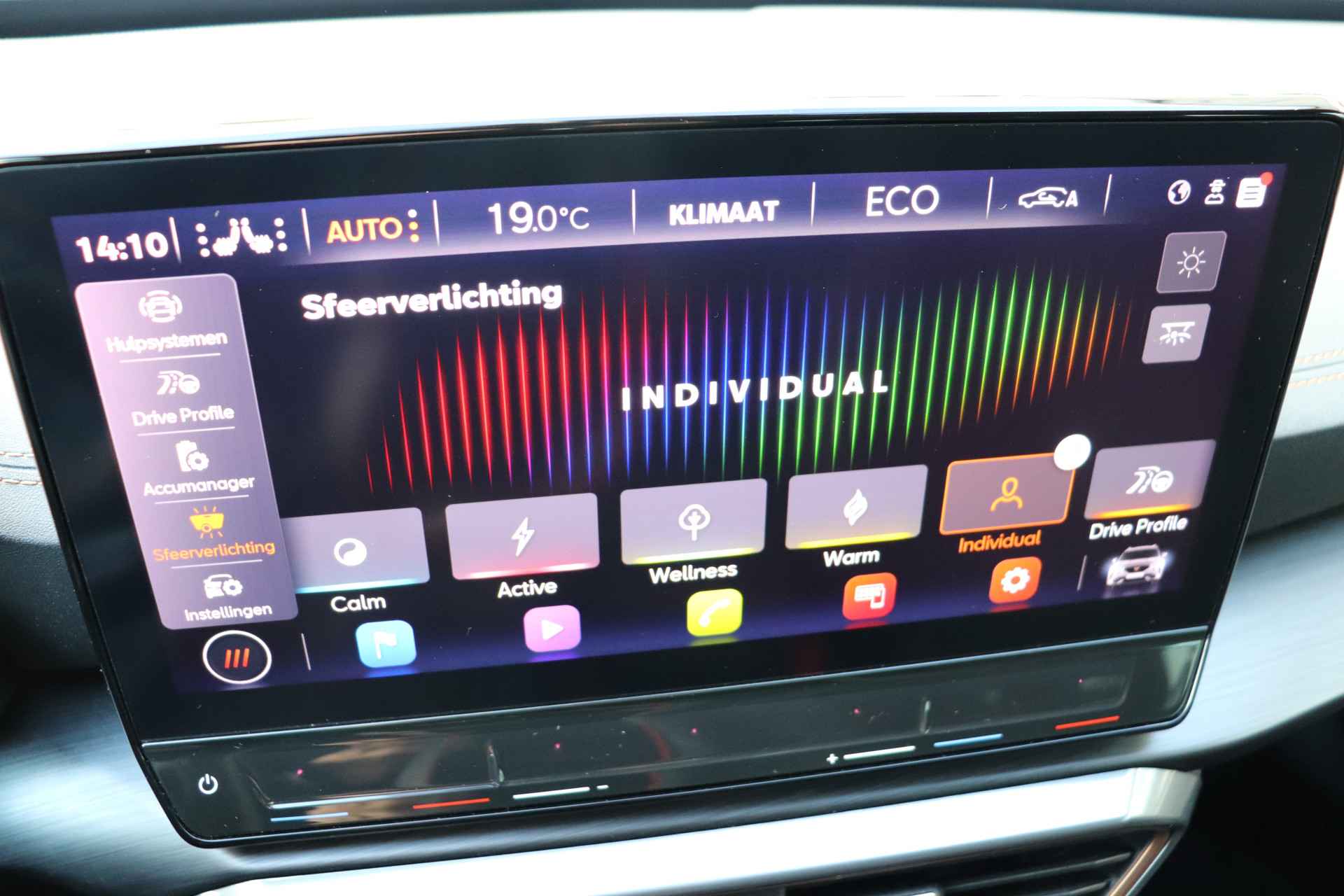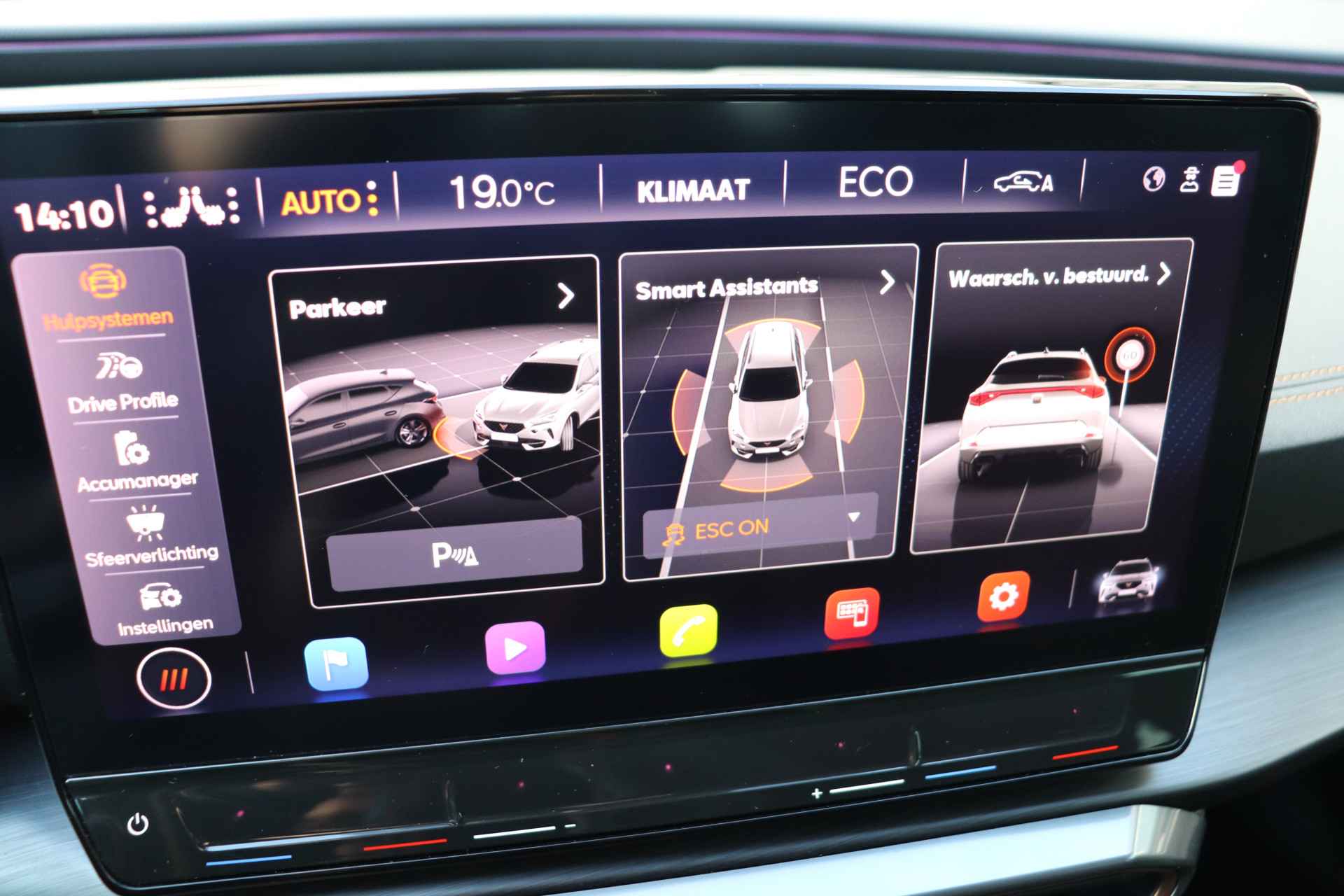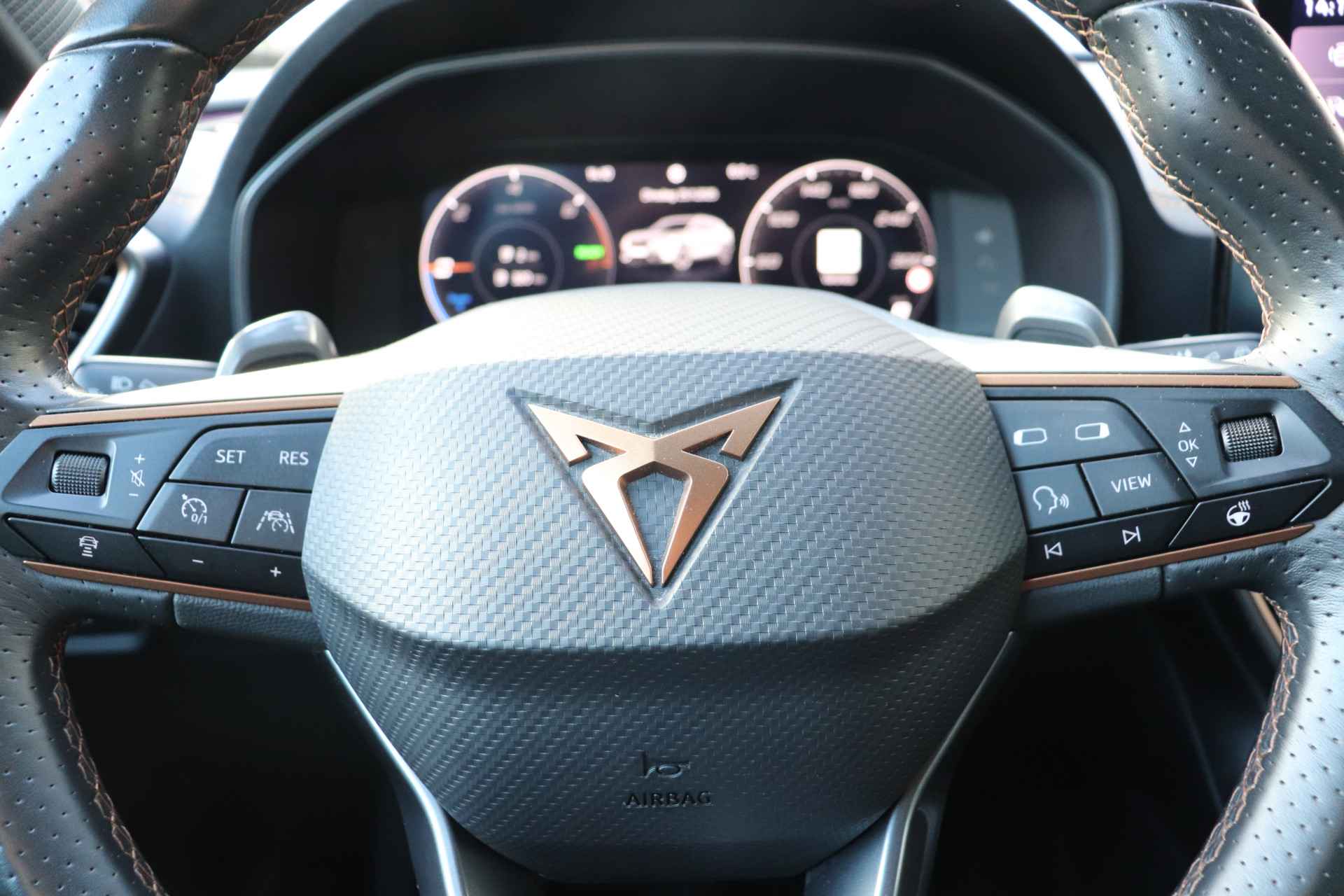 De CUPRA Formentor is ook voorzien van ADAS. Deze Advanced Driver Assistence Systems fungeren als extra ogen en oren: ze houden voor u de weg in de gaten en grijpen in wanneer dat nodig is. Wat deze auto ook kan, is lezen. Hij 'leest' voor u de verkeersborden tijdens de rit en attendeert u erop door ze op het dashboard te projecteren. Forward collision warning is een automatisch waarschuwingssysteem dat direct in werking treedt bij gevaar voor een kop-staartbotsing. Vermoeidsheidsherkenning neemt tekenen van vermoeidheid waar bij de bestuurder. Het systeem voorkomt dat er daardoor ongelukken gebeuren. Met voorzieningen als dodehoekdetectie, hill hold functie, autonoom remsysteem en bandenspanningcontrolesysteem, bent u altijd veilig onderweg.