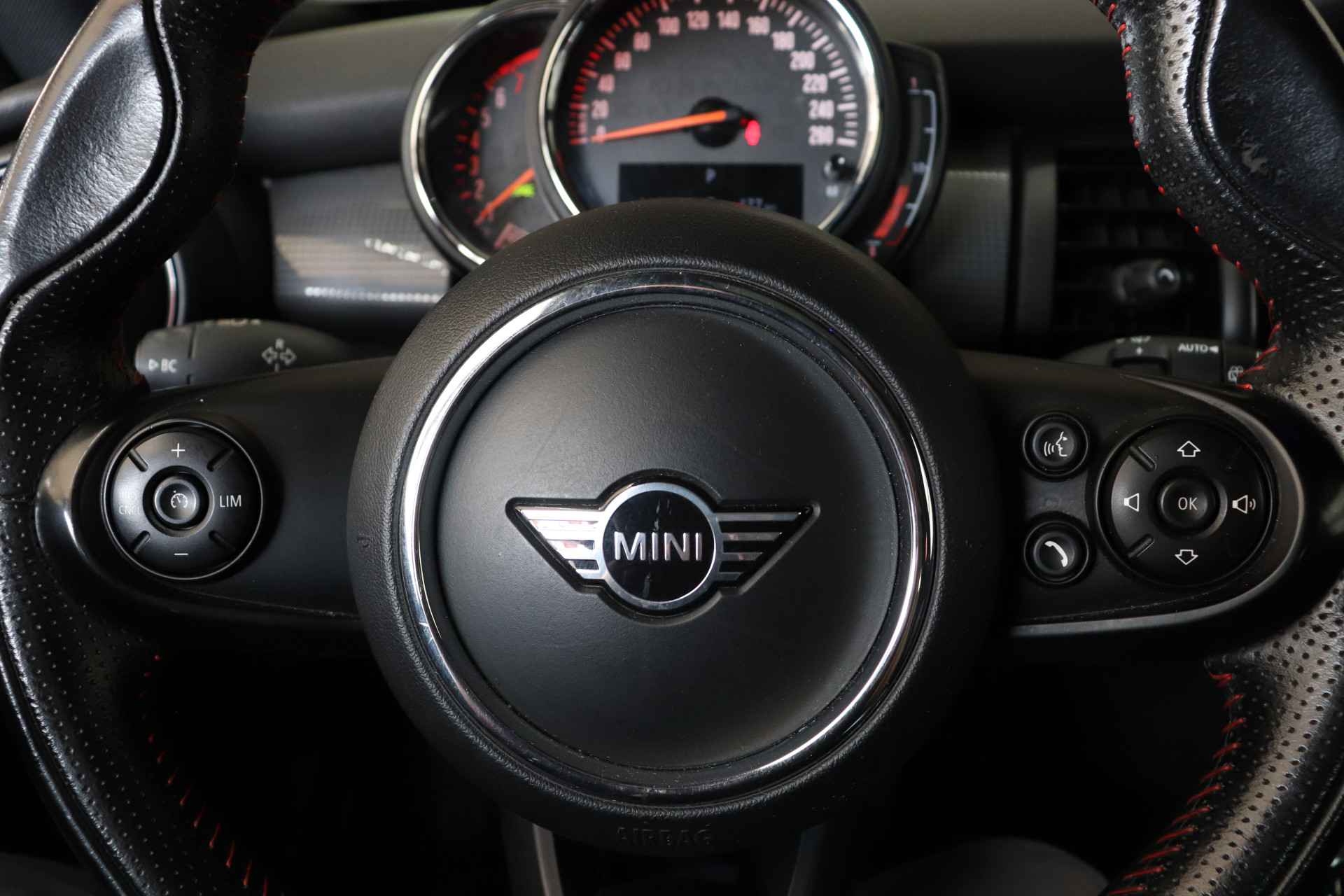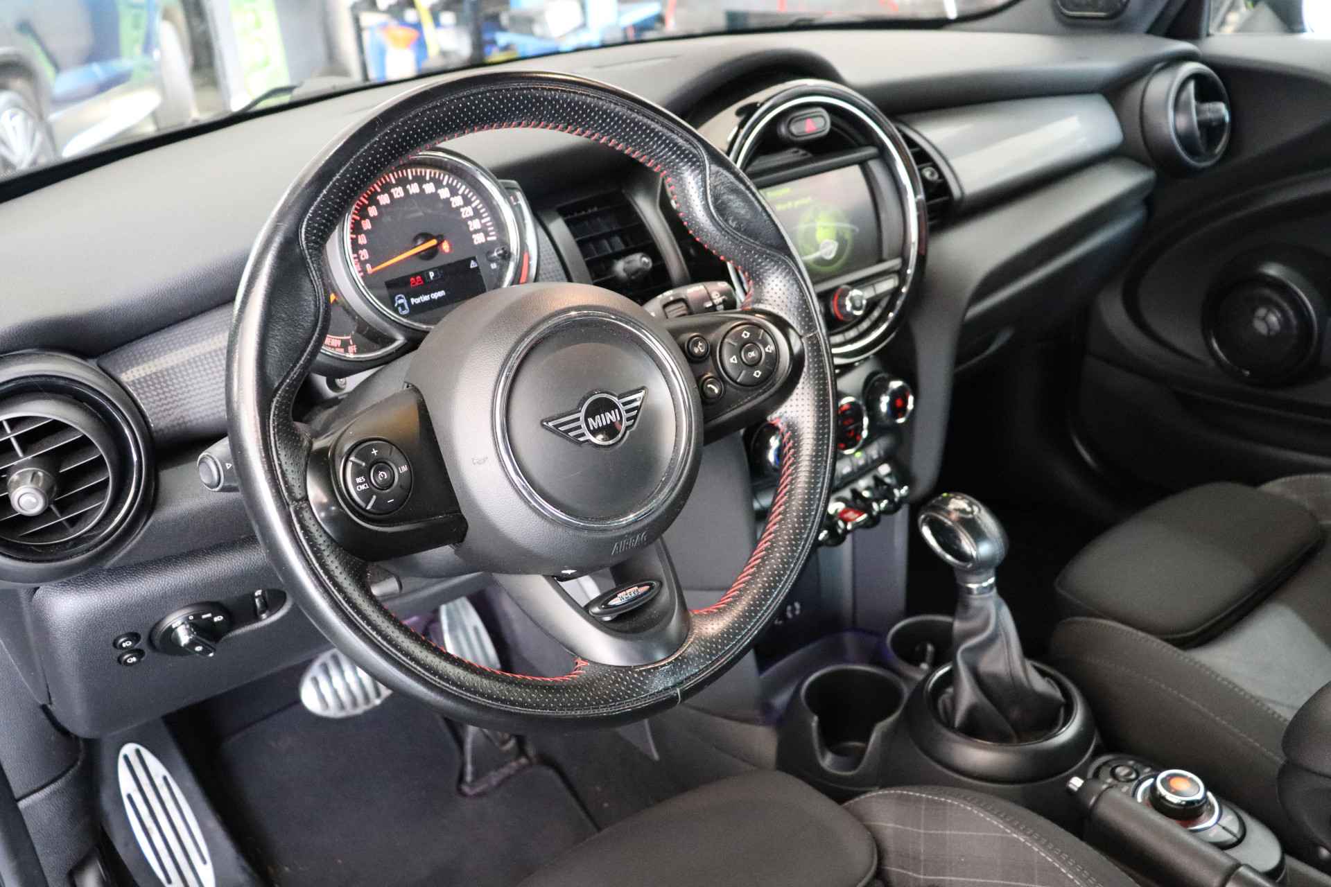 U kunt het audio-installatiesysteem en het full map navigatiesysteem bedienen met de knoppen op het stuur. De automatische airconditioning zorgt voor een behaaglijk klimaat in de auto. Met de hulp van de parkeersensoren kost inparkeren en uitparkeren u geen enkele moeite. Achter het stuur van deze MINI bent u niet alleen. De auto kijkt als het ware met u mee tijdens de rit. De regensensor schakelt de ruitenwissers in als het nodig is en de automatisch inschakelbare verlichting doet de lichten voor u aan. De cruise control houdt de snelheid constant. Dat is relaxt reizen! De MINI is standaard voorzien van: sportstuurwiel, keyless entry, centrale deurvergrendeling met afstandsbediening en boordcomputer.