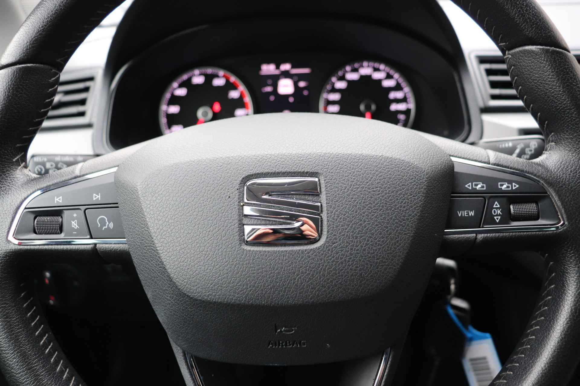Afstand schatten bij het achteruitrijden? Niet nodig. U weet het precies, dankzij de achteruitrijcamera. Ingebouwde spraakbediening maakt het mogelijk om de auto te bedienen zonder dat uw aandacht wordt afgeleid. Het full map navigatiesysteem geeft duidelijke instructies. Zo komt u veilig en vlot aan waar u moet zijn. Bij de luxe van deze auto hoort ook automatische airconditioning. Natuurlijk is een complete auto als deze ook voorzien van sensoren die de omgeving in de gaten houden. Deze SEAT heeft niet alleen een automatisch inschakelbare verlichting aan boord, maar ook een regensensor. De SEAT is standaard voorzien van: cruise control, automatisch dimmende binnenspiegel, lederen stuur, centrale deurvergrendeling met afstandsbediening, boordcomputer en lederen versnellingspook.